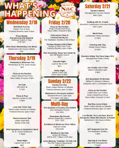 Join us on the 4th Friday of every month for lunch on the Downtown Square from 11am-2pm for NAC SNACK FRIDAY! We’ll have tables and chairs set up! A great way to end the week with your coworkers, friends, or a date! Food Truck Line Up (Subject to Change): March 27th: Greek Bites Oma’s Wurst […]