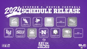 NACOGDOCHES, Texas- Stephen F. Austin Athletics announced its 2024 football schedule today. The Lumberjacks schedule features 11 games during the regular season, including five home games at Homer Bryce Stadium and a full seven game Southland Conference slate of games. The 2024 season marks the sixth season with Head Coach Colby Carthel at the helm, and is set […]