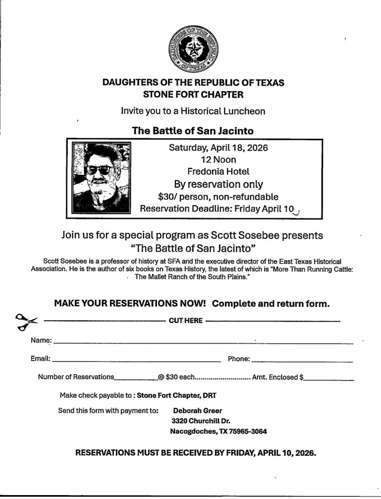 Daughters of the Republic of Texas to Host Historical Luncheon on the Battle of San Jacinto April 4, 2026April 8, 2026 Editorial Team