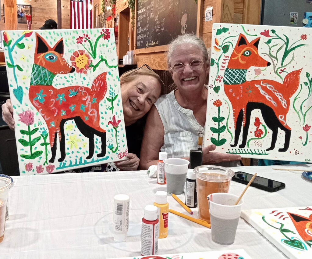 Images:  Michelle Filer and Jerry Permenter with art from her show November 17; Maggie Abernethy and Tere Royal at NAC’s Sip & Paint at the Fredonia Brewery during ArtWalk