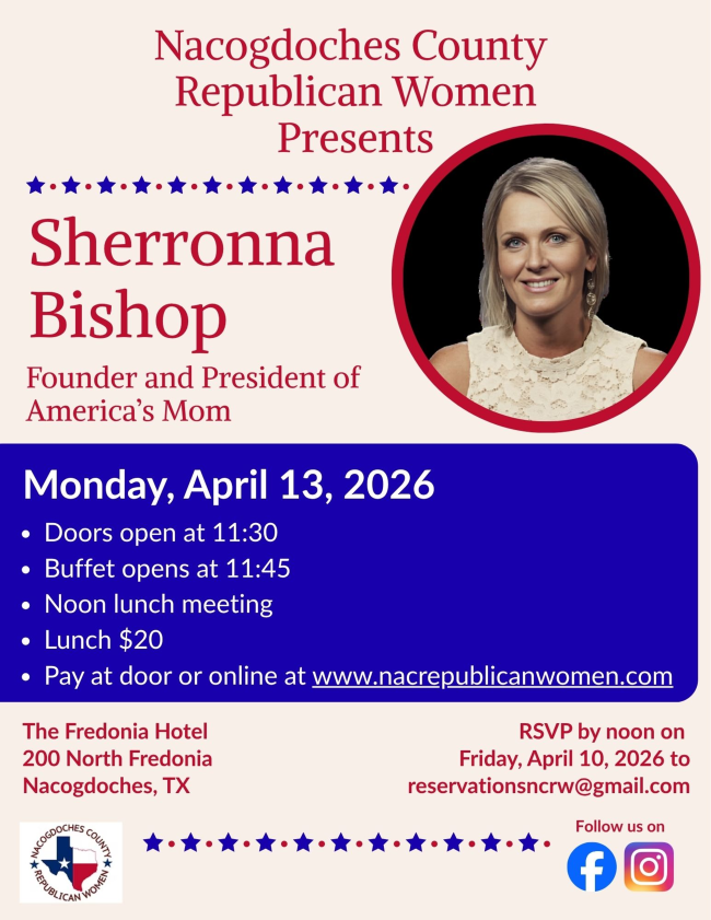 • Nacogdoches County Republican Women Host Sherronna Bishop for April Luncheon
