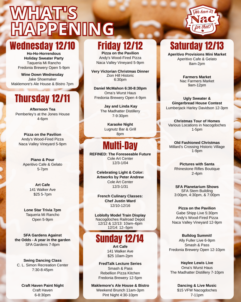 Nacogdoches Holiday Events: What’s Happening December 10–14 December 11, 2025December 17, 2025 Austin Roberts