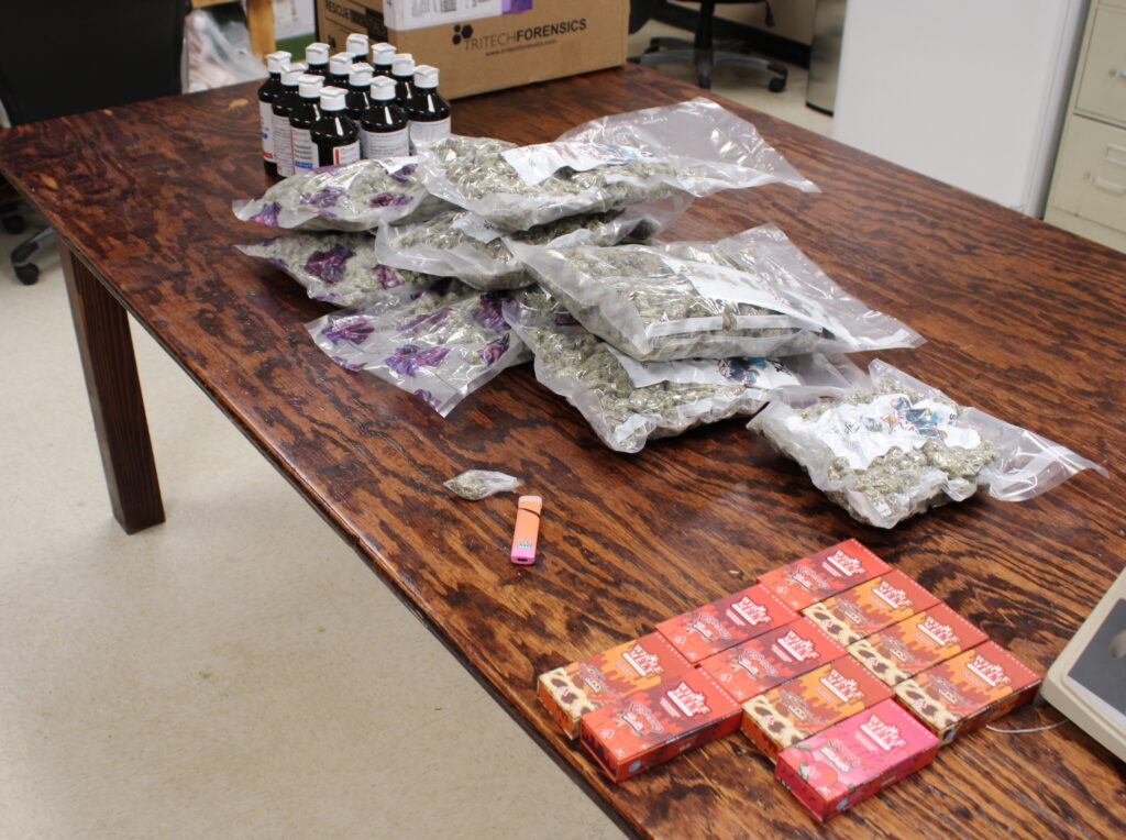 Hamilton, a Natchitoches, La. resident, was issued a warning for the traffic violation and had an expired vehicle registration. Deputies requested consent to search the vehicle, which was denied. An NCSO K-9 officer was called in, and the dog alerted to the scent of drugs. Deputies searched the car and located a box containing 12 bottles of promethazine cough syrup, at which point Bernard was taken into custody. A TCH vape and a small bag of marijuana were also discovered on the driver’s side floorboard and under the driver’s side seat. Eight vacuum-sealed packages of marijuana and 10 THC vapes were later discovered stashed behind one of the car’s quarter panels. In total, 8.4 lbs of marijuana was recovered during the stop.