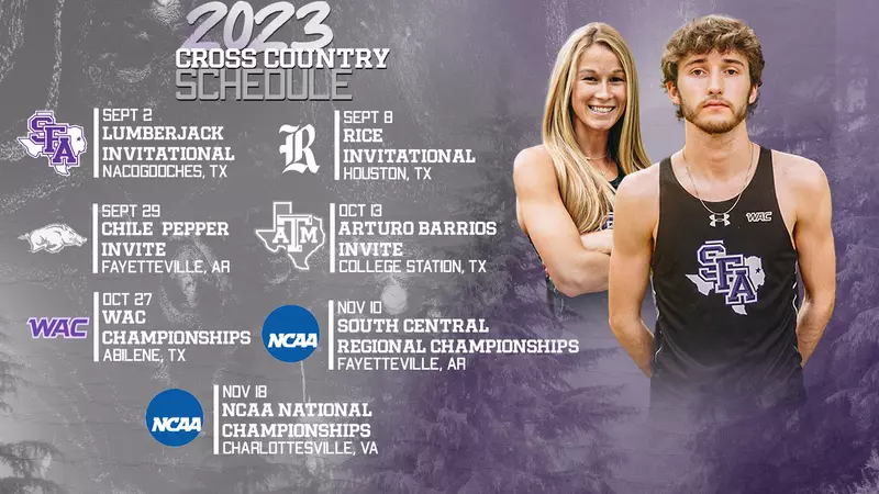 The 2023 SFA men’s and women’s cross country season will begin on Sept. 2nd, where the ‘Jacks will host the Lumberjack Invitational at Pecan Acres Park in Nacogdoches, Texas. See the full schedule below.