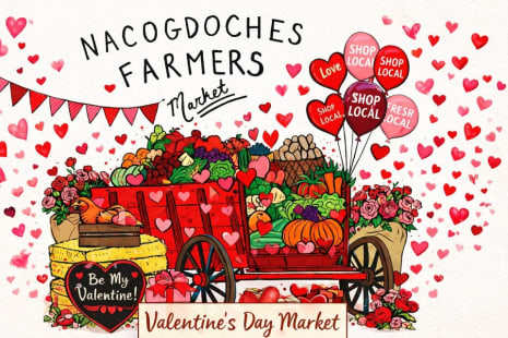 Fall in love with local! Join us at the Nacogdoches Farmers Market Valentine Market for fresh produce, baked goods, handmade treats and all your favorite local vendors! Grab something for your sweetheart and show some love to the farmers and makers who keep our community thriving. Shop local and share the love!